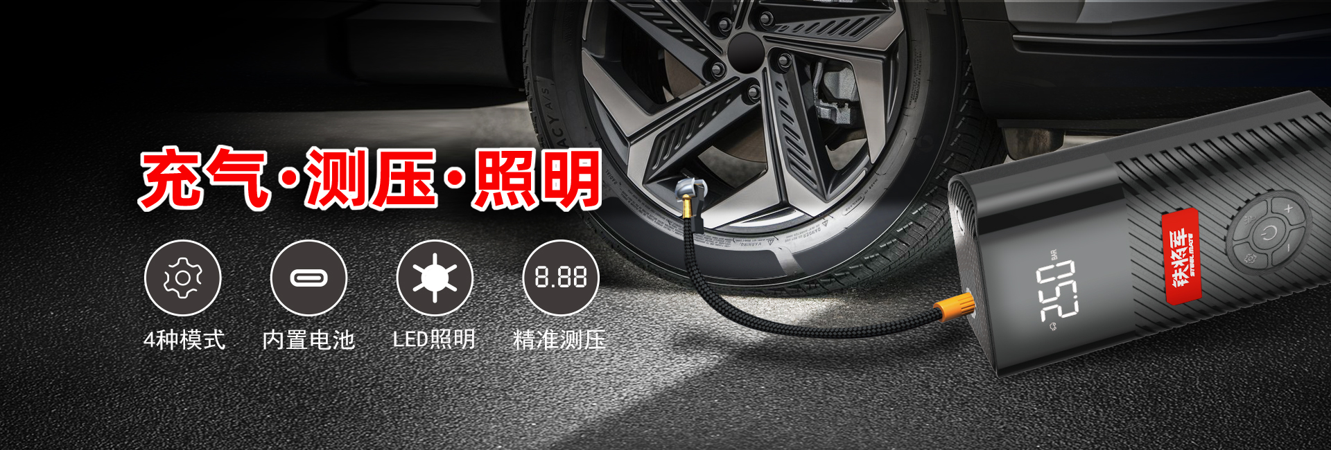 预设气压,充到自停;精准测压,数码显示;