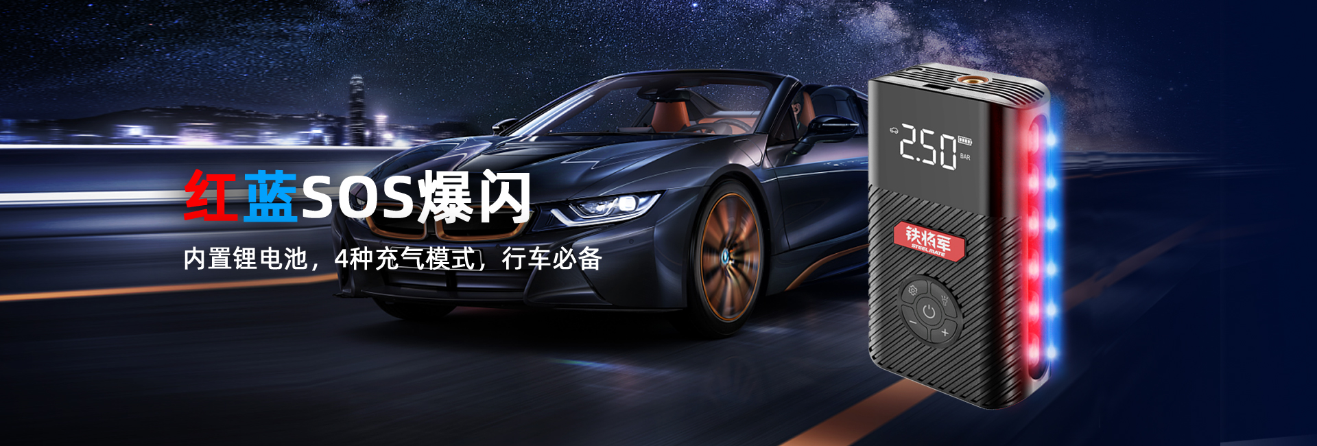 内置锂电池,移动充电宝;有线/无线充气泵二合一